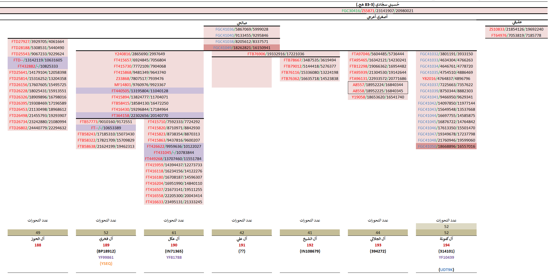 - حوالي 27% (12 فروع) من هذه الفروع المتنوّعة انتقلوا إلى بلاد الشام (بين دمشق والشام ونصيبين وطبريّة والرملة)، لم يظهر منها أحد إلى الآن في المشروع.