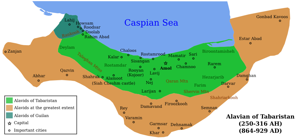 وهذه خريطة مبسّطة توضح تنقلات التكتّلات الحُسينيّة الأصغريّة الباقية في ممالك المشرق والحالة السياسيّة التي عايشها الكاتب وباقي الطالبيّين بين القرنين الرابع والخامس الهجري: