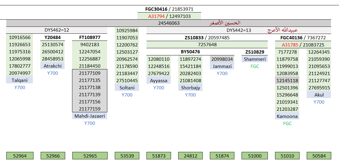 - المُشجّر الحُسيني الأصغري الجيني بحسب المرجع T2T.