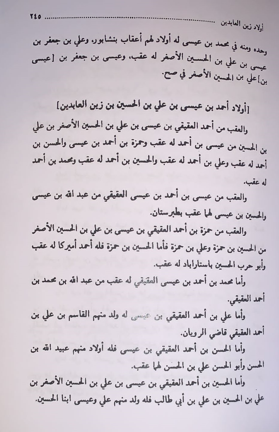 - ذريّة عبد الله العقيقي، وذريّته محصورة في وَلَده جعفر، وفيهما كثرة العدد والفروع والمُلاصقة في التنقلات المشرقيّة أيضاً مع باقي الطالبيّين.