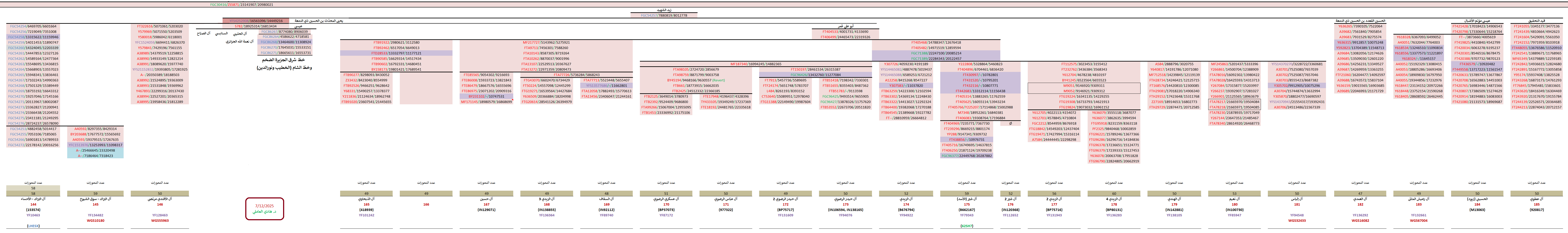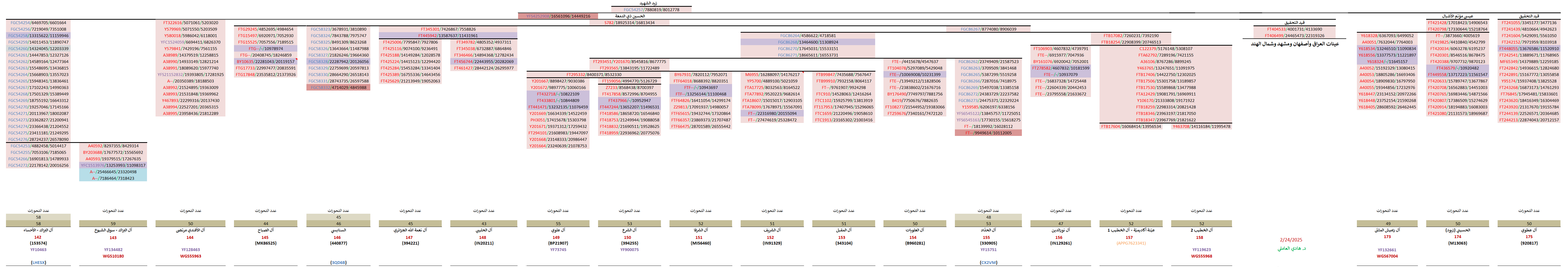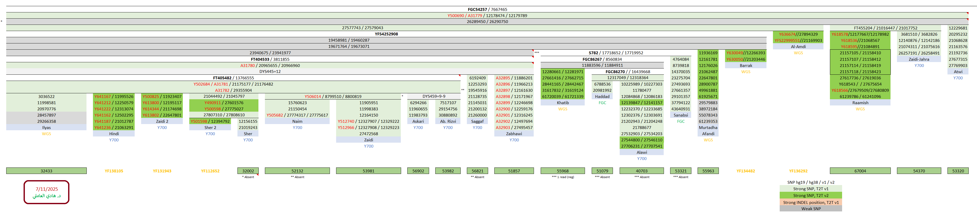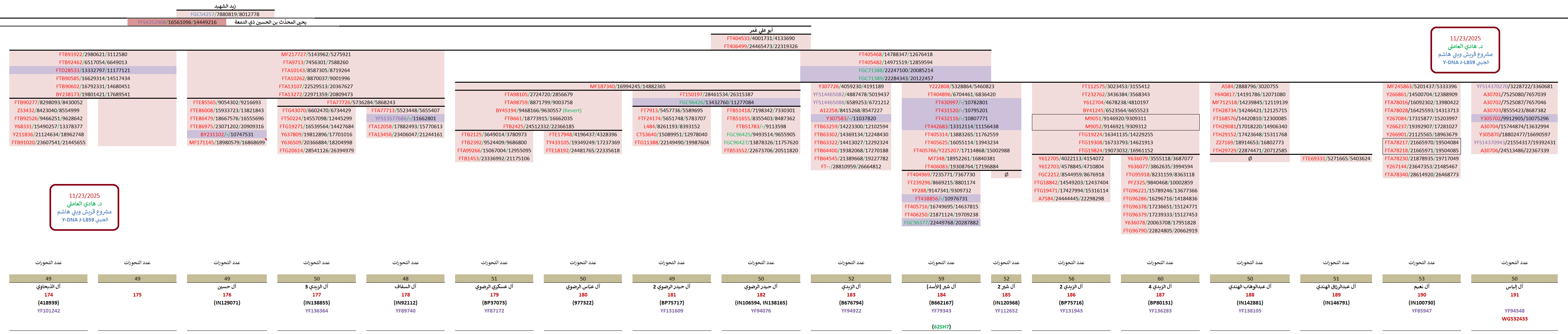 مواضيع مُتعلّقة: منتقلة الزيديّة وهيكليّتهم الجينيّة – خرائط ومشجرات ، نتيجة ثالثة للسادة آل زيدي الحُسيني Y700 ، عيّنة السادة “السقاف” Y700 ، نتيجة السادة آل حسين الحُسيني Y700 ، نتيجة Y700 لآل الهندي “الزيود” ، نتيجة Y700 رابعة لسادات البارا آل زيدي ، نتيجة Y700 لسادات البارا آل زيدي الحُسيني ، نتيجة السادة آل الزيدي الحُسيني Y700 ، عيّنة السادة الندوي ، نتيجة ثانية Y700 للسادة آل حيدر Rizvi الحُسيني ، نتيجة السادة آل عباس الرضوي Y700 ، نتيجة السادة آل عسكري الرضوي Y700 ، نتيجة السادة آل حيدر الرضوي Y700 ، نتيجة Y700 ثانية للسادة آل شير الأسد ، نتيجة السادة آل شير الأسد Y700 ، نتيجة السادة آل نعيم الحسيني Y700 ، نتيجة السادة آل إلياس الحُسيني WGS ، عيّنة السادة الندوي ، نتيجة السادة الذبحاوي الحُسيني Y700 ، تحديث ثاني للسادة آل صالح الحُسيني ، نتيجة WGS للسادة آل البرّاك الحُسيني ، سبع نتائج جديدة لآل البراك الحُسيني ، تحديث نتيجة آل البراك ، نتيجة WGS للسادة آل مرتضى الأفندي الحُسيني ، نتيجة السادة آل مرزوق الحُسيني ، نتيجة السادة الحُليبي الموسوي Y700 ، نتيجة السادة آل الجزائري Y700 ، نتائج Y700 للسادة العوّامي الحُسيني ، زيود شرق الجزيرة: السادة الجراش وآل درويش ، نتيجة السادة آل الشرفا الحُسيني Y700 ، نتيجة السادة آل العلويات الحُسيني Y700 ، نتيجة السادة آل الحدّاد FGC ، نتيجة السادة آل المُقبّل الحُسيني Y700 ، نتيجة السادة آل الشريف الحُسيني Y700 ، نتيجة السادة آل الشرع الموسوي Y700 ، نتيجة السادة آل العلوي Y700 ، عيّنة السادة آل حمزة الحُسيني ، عيّنة السادة آل سيد إبراهيم الحُسيني ، نتيجة ثالثة لآل السادة ، نتيجة السادة آل نورالدين الحُسيني Y700 ، نتيجة WGS لعيّنة السادة آل الخطيب ، نتائج عيّنات السادة آل مرتضى وآل الخطيب ، نتيجة WGS للعيّنة الأكاديميّة FGC54257 ، نتائج آل الصَبَّاح العاملي Y700 ، السادة العمدي WGS – أوّل نتيجة حُسينيّة جنوب مكّة ، نتيجة السادة رآميش المُثنّى الكرماني الزيدي ، نتيجة السادة “الزيود” من بني حسين Y700 ، نتيجة آل عطوي الموسوي Y700 ، تحديث هيكليّة فروع FGC54257 ، مشاهد ومزارات الكوفة والنجف الأشرف ، الطالبيّات والهاشميّات من أمّهات الطالبيّين