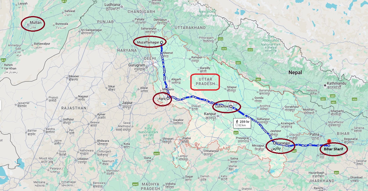 وينتهي نسب السادة آل زيدي الترمذي -العيّنة الثالثة- وبني عمومتهم آل حسين الزيدي إلى جدّهم السيّد حسن نهتوري بن ضياء الدين بن حسن عسكري بن محمود الترمذي الذي ينتهي موروثه إلى السيد أبي عبدالله الحسين النسابة (نقيب نقباء الطالبيّين في العهد العبّاسي) بن أحمد المحدث بن أبي علي عمر بن أبي الحسن يحيى المحدث بن الحسين ذي الدمعة بن الفقيه زيد الشهيد بن الإمام علي زين العابدين (عليه السلام). وقد تمّ جمع هذا العامود النسبي حديثاً وتشوبه بعض الأخطاء بين الجدّ محمود الترمذي والحسين النسّابة (نقيب النقباء). بالمقابل، نجد أنّ هذا الخطّ مُنفصل في جدّ أعلى عن خط السيّد أبو الفرح الواسطي (أو أبو الفرج، الجدّ الجامع لكافّة السادة الزيديّة في باكستان والهند المعروفين بسادات البارا، والمُعقّب من 12 ولداً والمُنتقل من واسط إلى الشمال الهندي عبر بلاد الريّ وخراسان، حيث حصل على ضياع في إقليم البنجاب، وتسلّم هو وأحفاده رئاسة بلدة بارا في مظفرنجار). ولا نجد ذِكر لهجرة زيديّة طالبيّة إلى خُراسان الكُبرى في كتاب المُنتقلة، وهي جغرافيا تُعتبر همزة وصل لهجرات ما وراء النهر وصولاً إلى الشمال الهندي والكشميري. إلّا أنّنا نجد أنّ العلّامة السيّد جمال الدين ابن عنبة الحسني قد ذكر في “عمدته” الخطوط الزيديّة من ذريّة الحسين النسّابة النقيب التي انتقلت إلى الهند وسمرقند والقرم. وهذا مُشجّر يوضح أبرز فروعهم المغادرة لموطنها الأصلي في المشهد الغروي (مرقد أمير المؤمنين عليه السلام) والكوفة، وهم جميعاً ذريّة السيد النسّابة أحمد شمس الدين العُمري الزيدي: