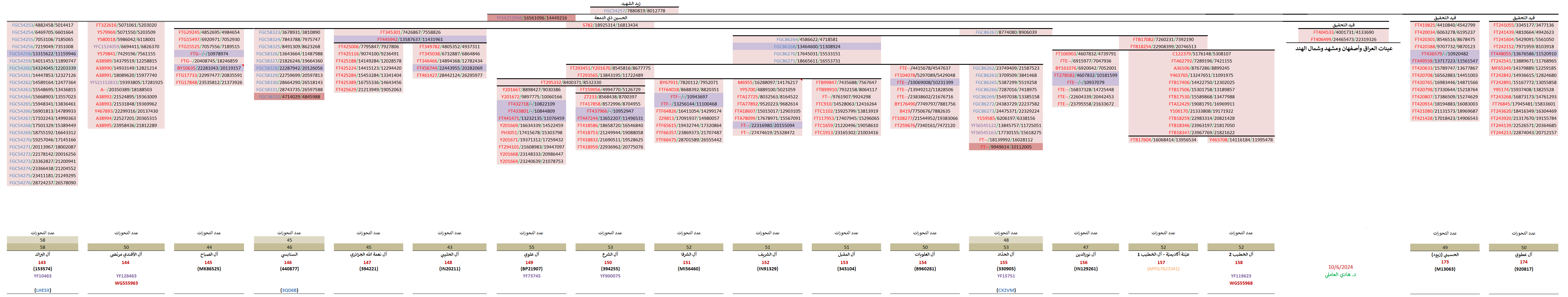 - مُتوقّعة موجبة للتحوّر الحُسيني الفرعي FGC54257 الجامع لها مع عيّنات زيود الجهراء وآل عطوي وعيّنات شرق الجزيرة العربيّة وجنوب العراق (اليصرة والحلّة) والشام (دمشق وجبل عامل) وشمال الهند.