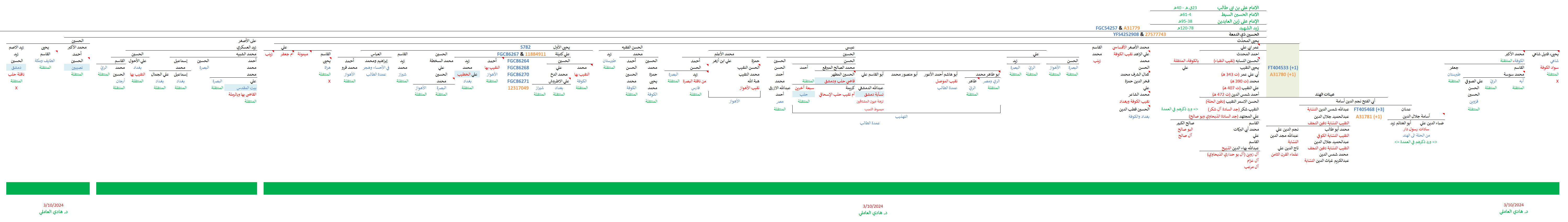 وقد حاولنا هنا وضع مُشجّر إضافي يُبرز السياق الجيني للخطوط الثلاث أسفل التكتّل FT404533، المُتمثّلة بذراري السيّد أبي الفتح أسامة (جدّ سادات رسول دار والبارا من جهة وجدّ السيد محمد شرف الدين المُتنقّل بين سمرقند والقرم من جهة ثانية) وأخيه الحسن الأسمر النقيب (جدّ السادة آل شكر والذبحاوي):