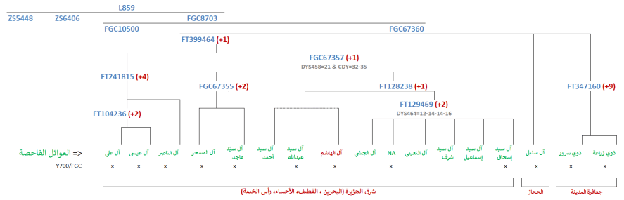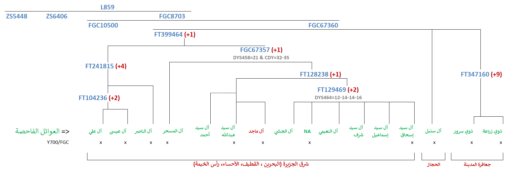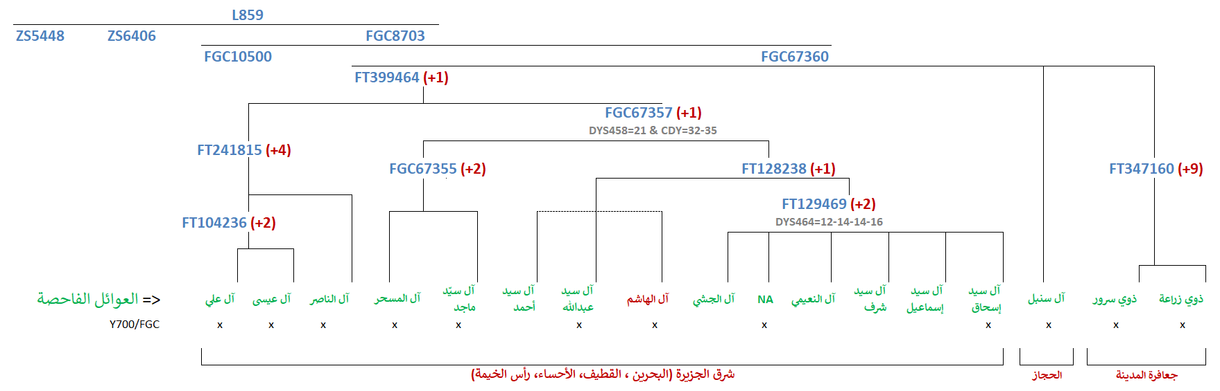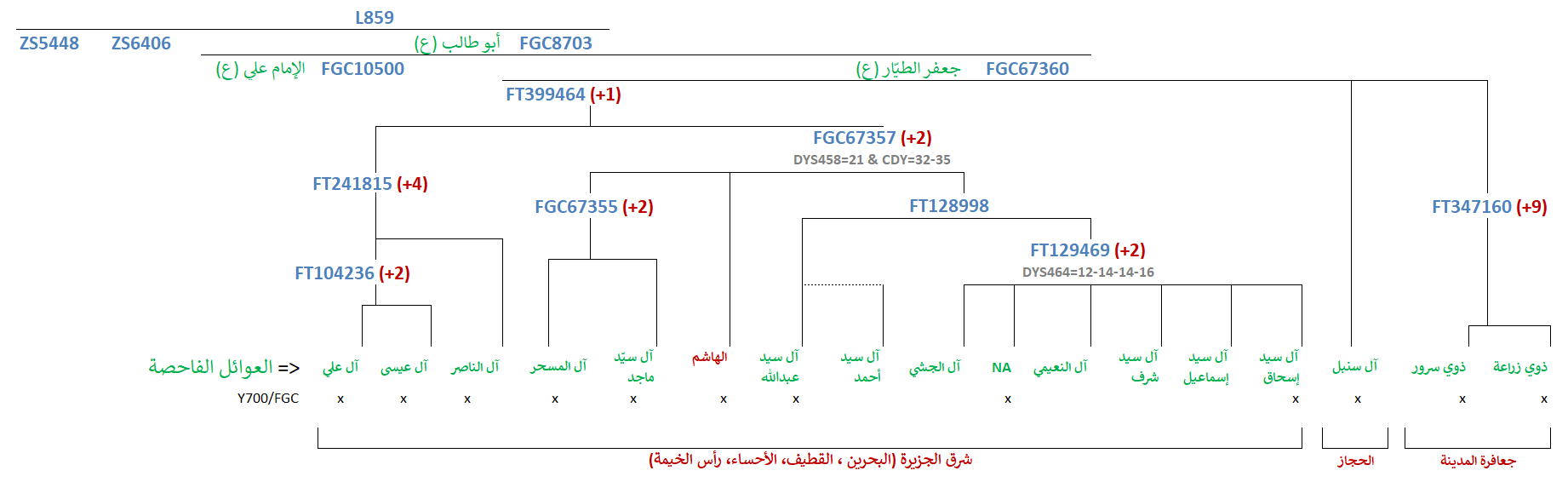 وبدا تطابق هذا العقب التاريخي جليّاً مع الفروع الجعفريّة الجينيّة لدينا في المشروع، والتي تواترت على شكل المُشجّرات التالية: