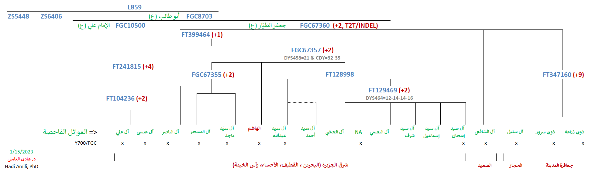 مواضيع مُتعلّقة: نتيجة WGS للسادة آل الشافعي الجعافرة ، ثلاث عيّنات للسادة الحرابوة الجعافرة ، نتيجة Y700 لجعافرة المدينة الأشراف ، نتيجة السادة ذوي سرور الجعافرة Y700 ، نتيجة ثانية طالبيّة للسادة آل إسماعيل ، نتيجة آل سيّد إسحاق البلادي Y700 ، نتائج السادة آل شرف والنعيمي الطالبيّين ، نتيجة السادة آل النعيمي ، نتيجة عيّنة آل الجشّي ، نتيجة آل سيّد عبدالله البلادي Y700 ، نتيجة السادة آل سيد أحمد ، نتيجة FGC للسادة المُسَحِّر ، نتيجة آل سيّد ماجد البحراني Y700 ، نتيجة Y700 للسادة الهاشم الطالبيّين ، نتيجة Y700 لآل الناصر “الجعافرة” ، نتيجة عينة آل حسين ، نتيجة Y700 لآل أحمد “الجعافرة” ، تحديث نتيجة آل عيسى عبدالله Y700 ، تحديث نتيجتي آل علي وسنبل ، نتيجة الأشراف آل سنبل Y700 ، شواهد الجعافرة التاريخية ، الآباء الطالبيون، تحوراتهم وخصائصهم ، التحور الطالبي الهاشمي