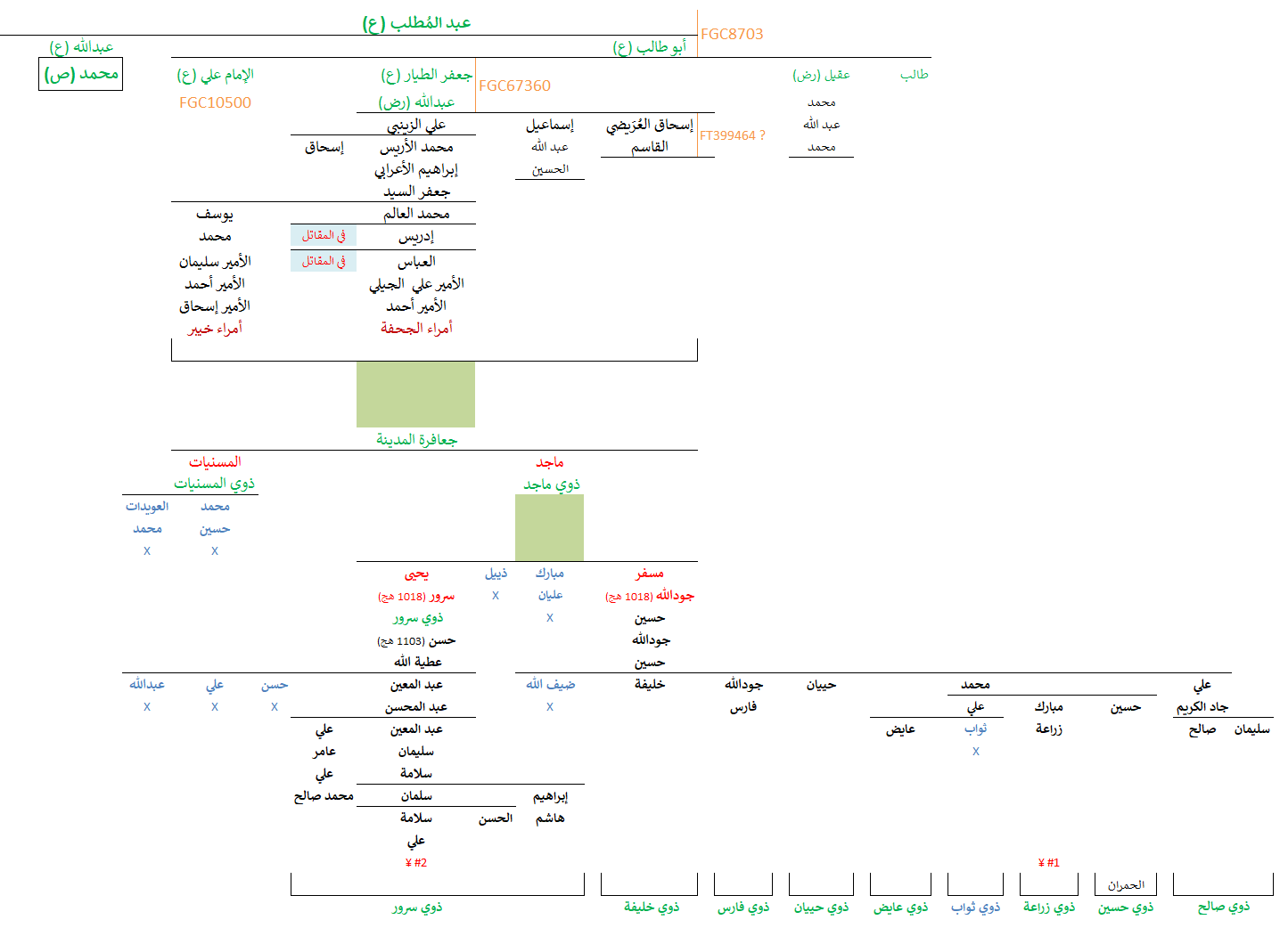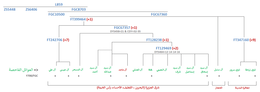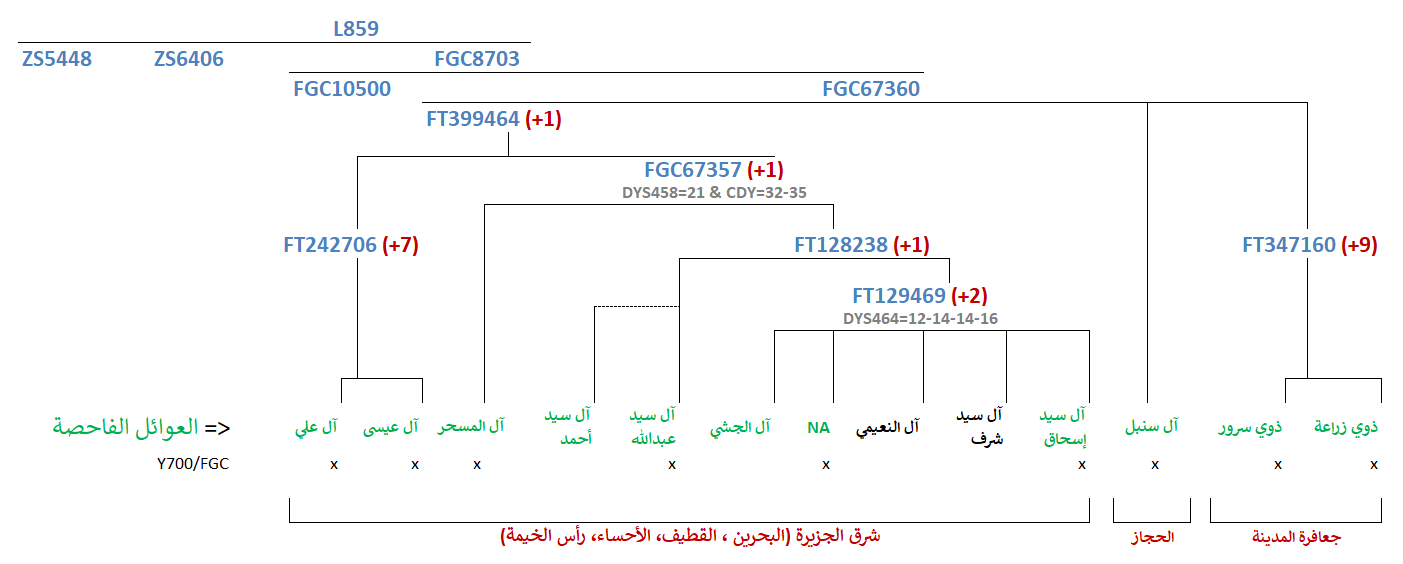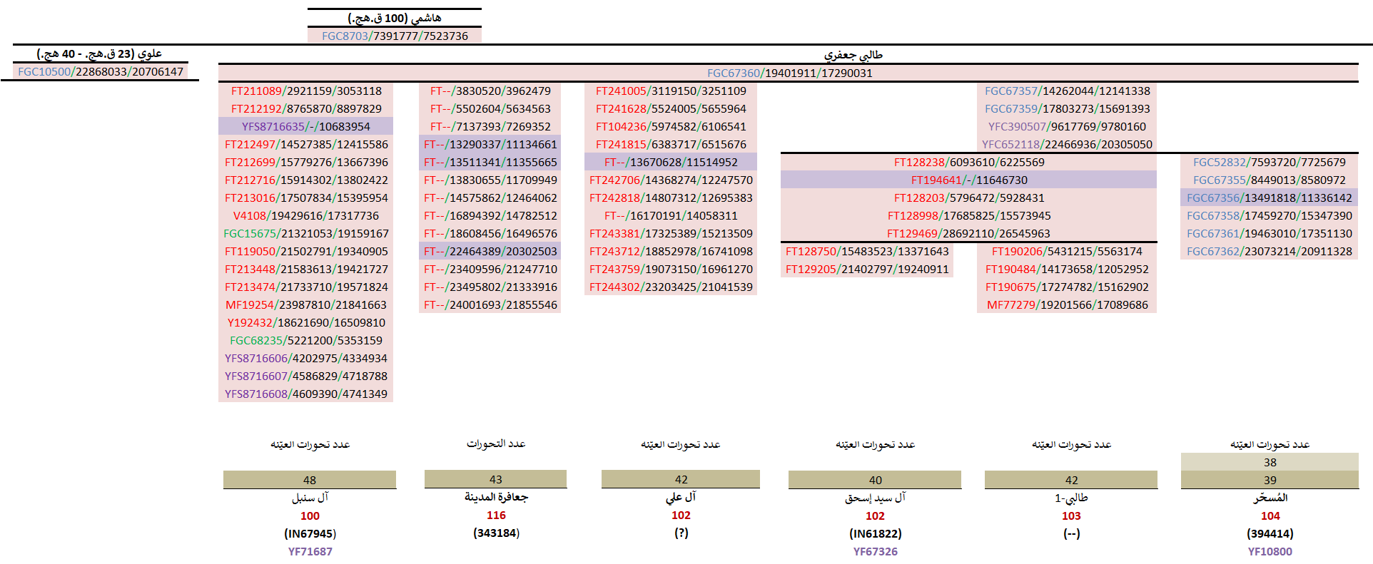 مواضيع مُتعلّقة: نتيجة آل سيّد عبدالله البلادي Y700 ، نتيجة السادة آل سيد أحمد ، نتيجة FGC للسادة المُسَحِّر ، نتائج جديدة لعيّنات طالبيّة ، نتيجة السادة آل النعيمي ، نتيجة آل سيّد إسحاق البلادي Y700 ، نتيجة عيّنة آل الجشّي ، نتيجة السادة آل إسماعيل ، نتيجة عينة آل حسين ، نتيجة Y700 لجعافرة المدينة الأشراف ، نتيجة السادة ذوي سرور الجعافرة Y700 ، تحديث نتيجة آل عيسى عبدالله Y700 ، تحديث نتيجتي آل علي وسنبل ، نتيجة الأشراف آل سنبل Y700 ، شواهد الجعافرة التاريخية ، الآباء الطالبيون، تحوراتهم وخصائصهم ، التحور الطالبي الهاشمي