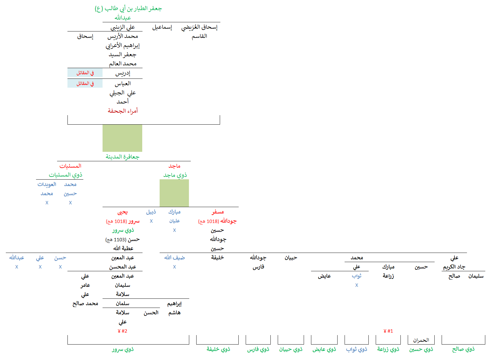 - من الضروري أيضاً تطوير عيّنات آل الناصر/حسين وآل باناجة وآل الشريف إلى Y700 لنتأكد من وجود فروع عقيليّة أو مُطّلبيّة مُحْتَمَلة تحت FGC8703 (خارج التكتّل الجعفري FGC76360).