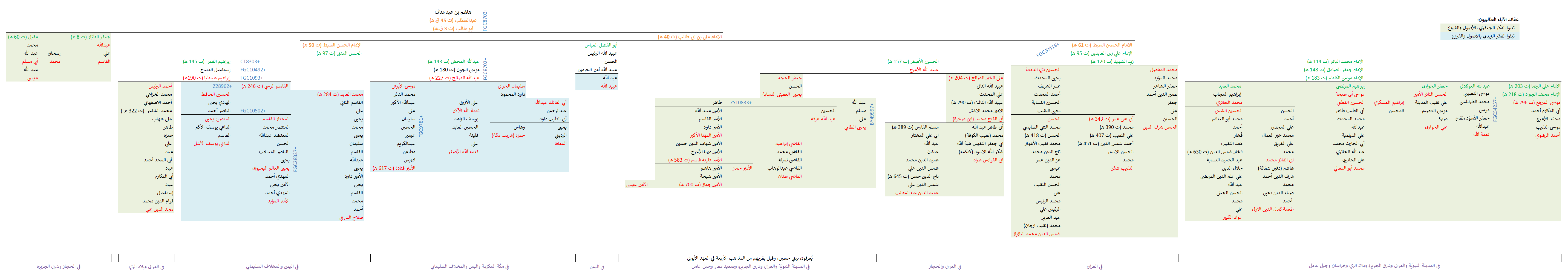 وهذا مُشجّر جينو-تراثي يوضح فرعهم بين أعمدة نسب باقي الأشراف النمويّين والقتادات الموجودة في المشروع: