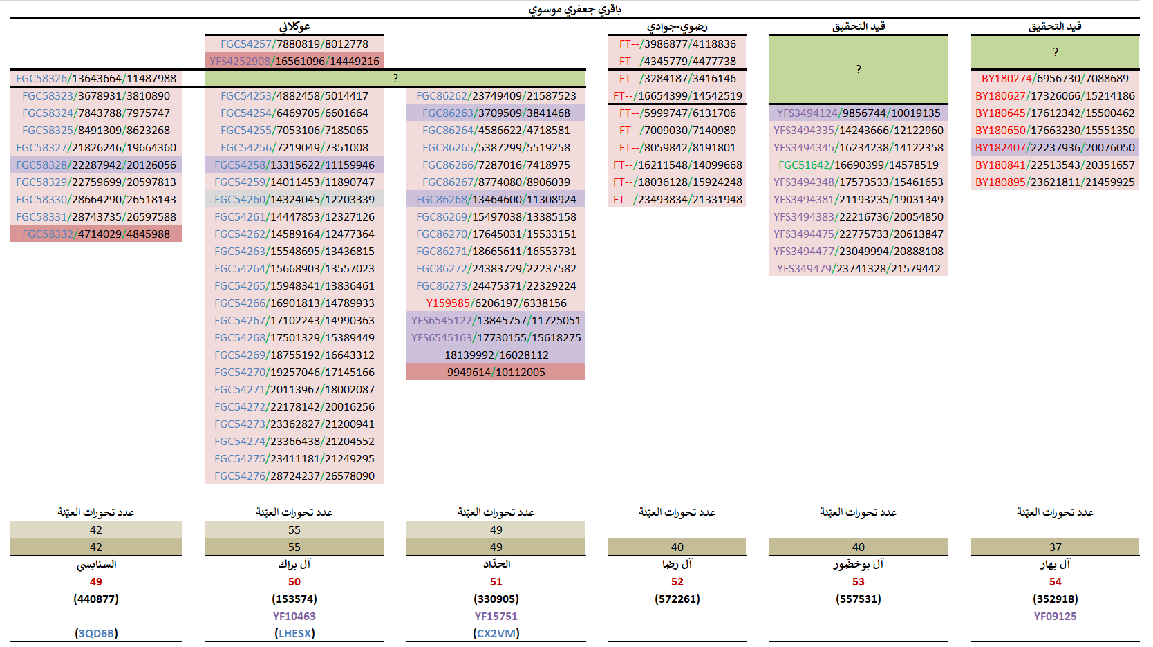مُلاحظة: تبقى هذه الهيكليّات الجينو-تراثيّة قيد التدقيق والدراسة وتحتاج المزيد من العيّنات بالمواريث والجغرافيا الصريحة لتدعمها وتصحّحها.