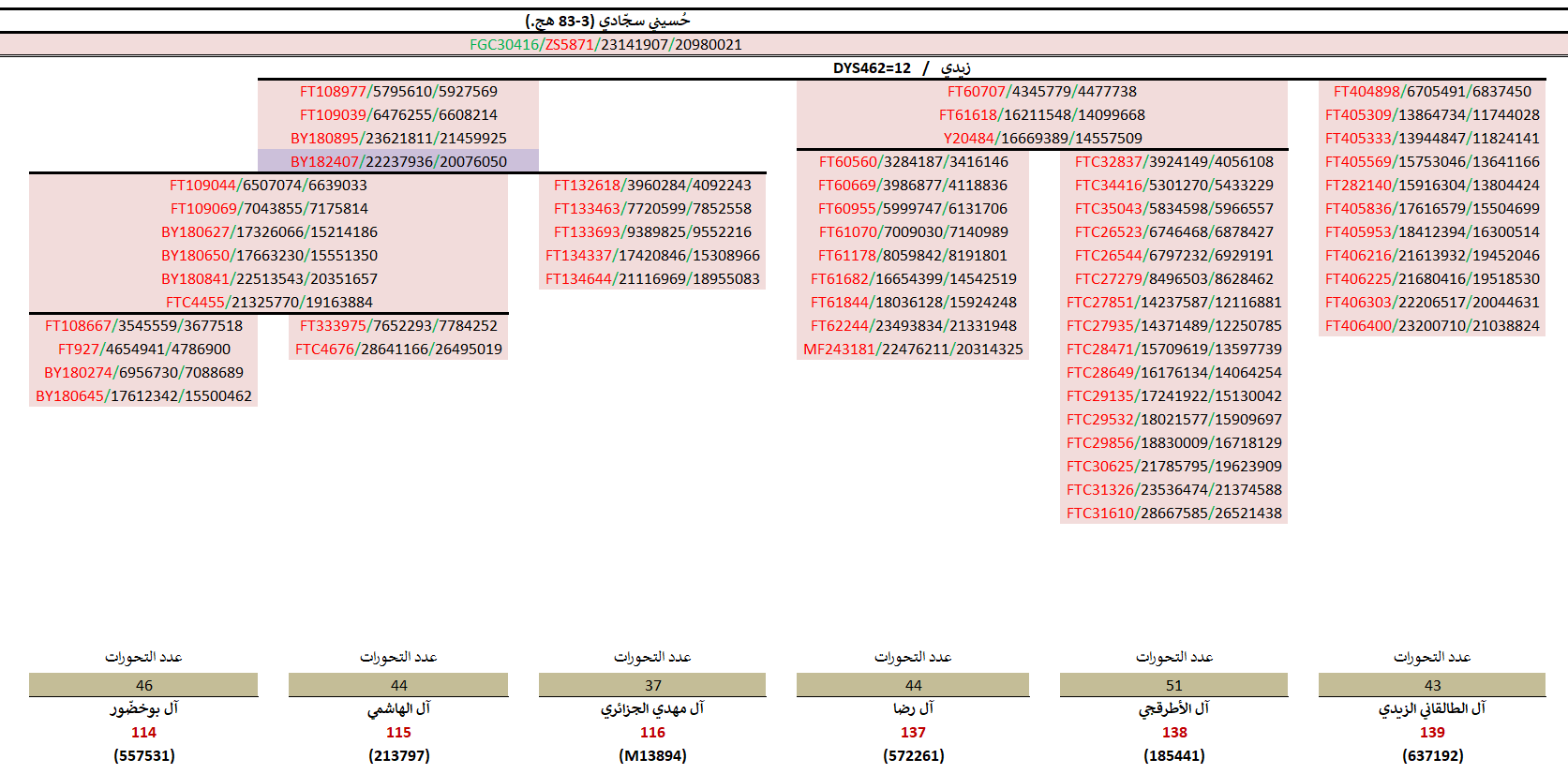 - المُشجّر الحُسيني الأصغري الجيني بحسب المرجع T2T.