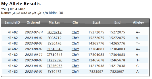 - موجبة للتحوّرات المشتركة الخاصّة بالسادة آل مهنّا كافّة (BY50476 و BY50479 و FT149315 و FTB20991 و DYS570=15 و DYS561=14).