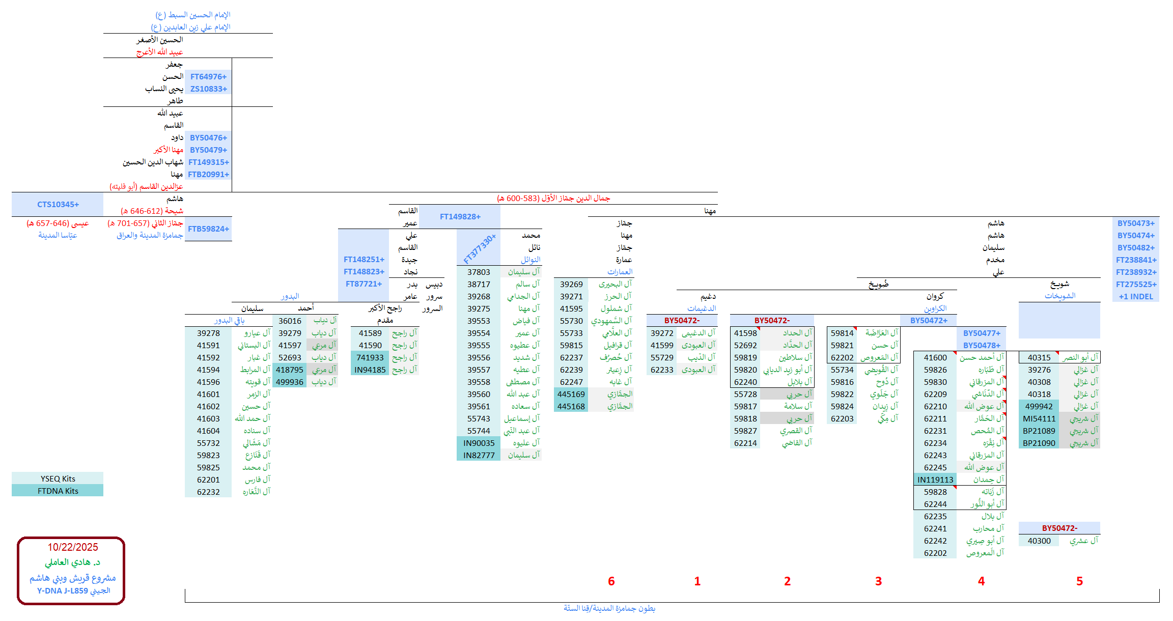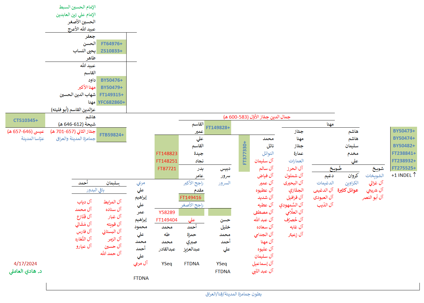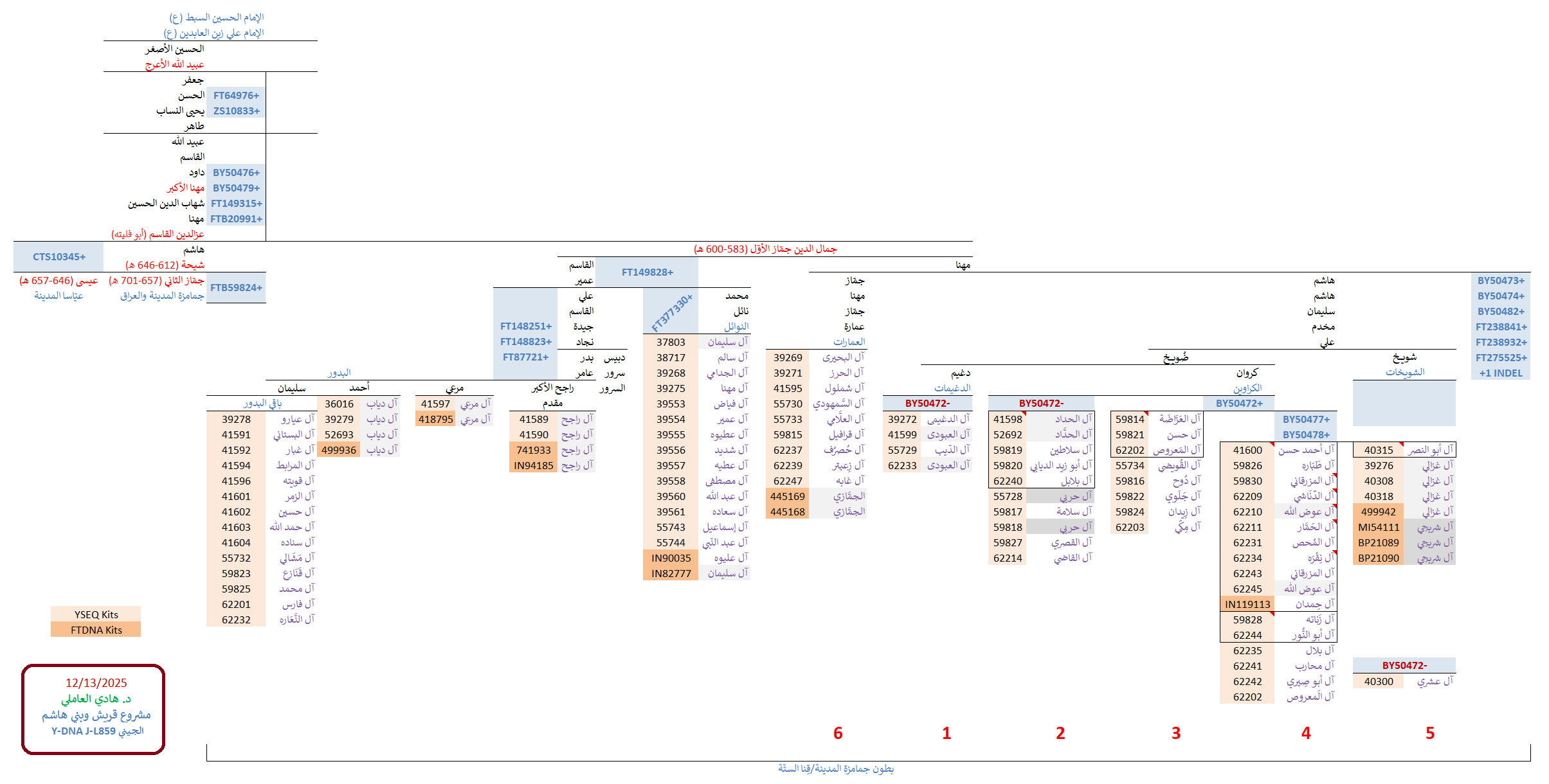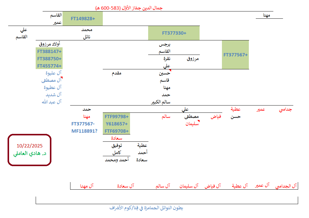 وهكذا بدا التحديث الجديد لمُشجّر الأشراف البدور الجيني بتحوّراته الخاصّة والمُشتركة الجديدة (مضموماً له باقي خطوط آل مهنا الجينيّة، من البدور والشويخات والكراوين والعياسا وباقي أولاد شيحة وآل جماز الثاني):
