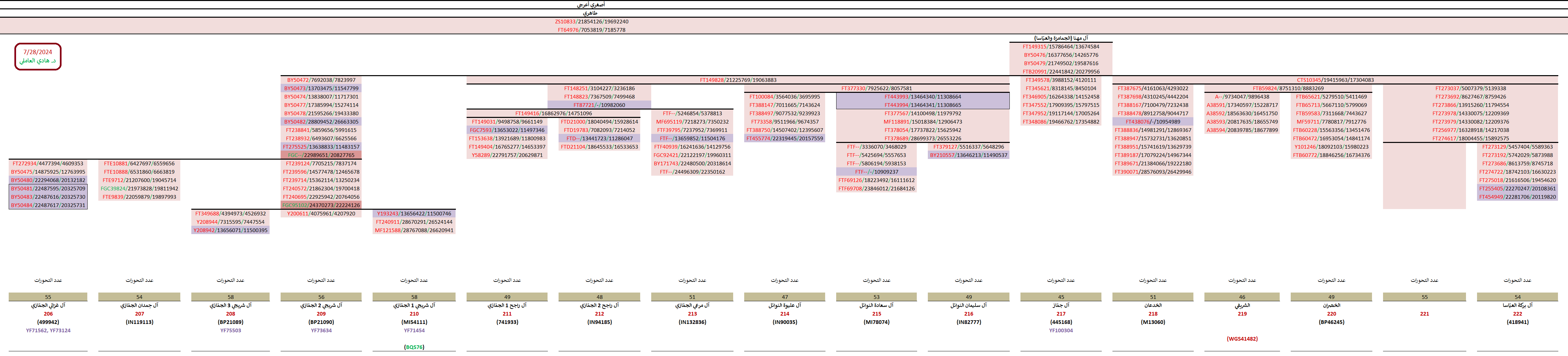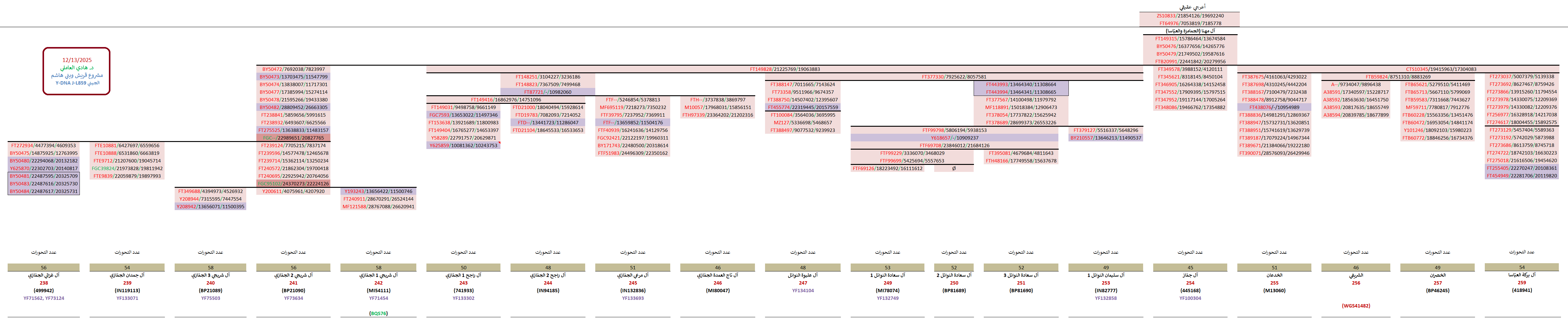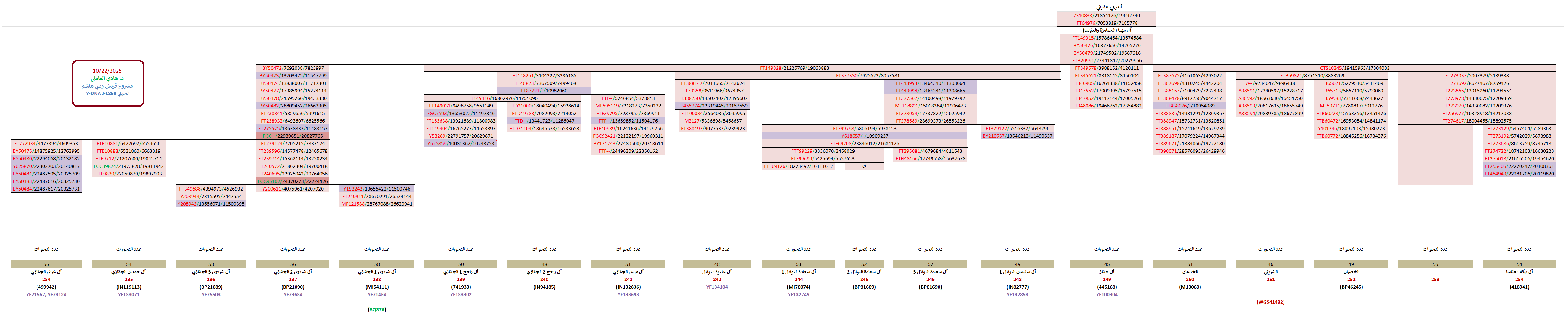 - سالبة للتحوّر FT377330 الخاصّ بالأشراف النوائل (السادة آل سليمان وآل عليوة وغيرهم).