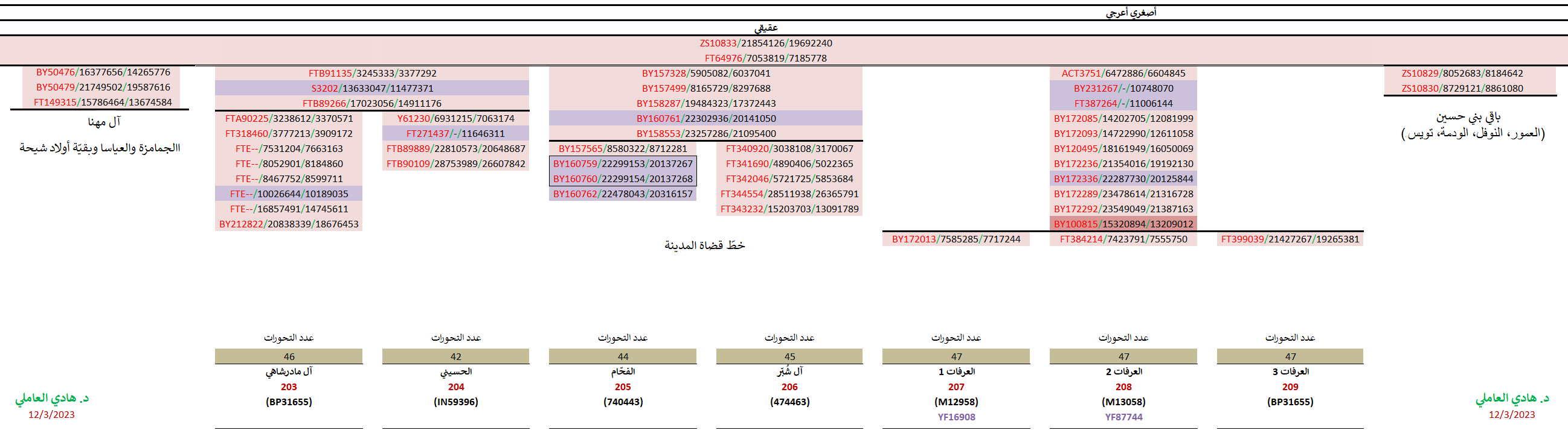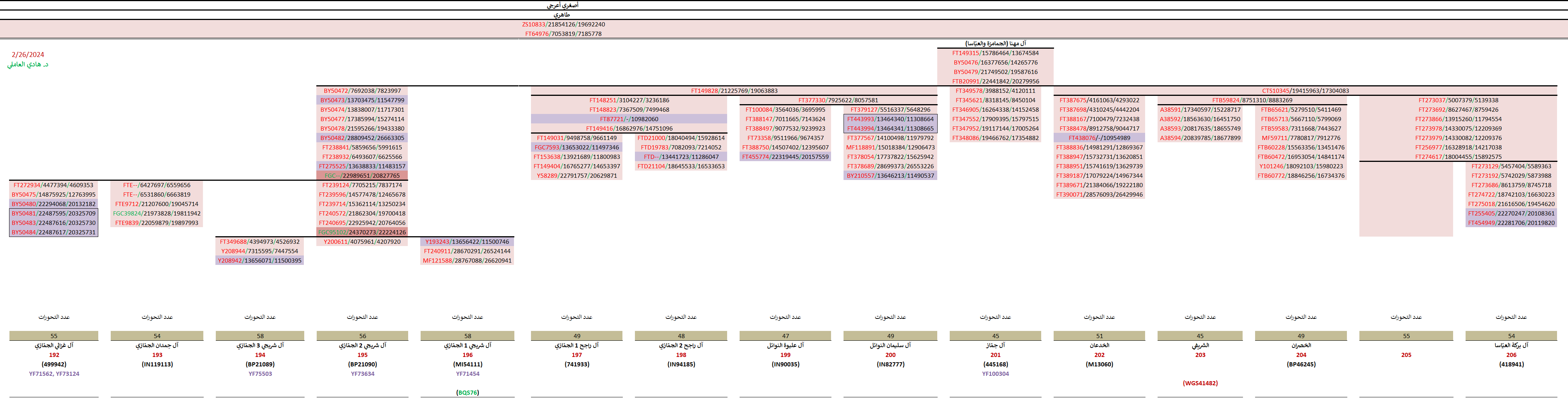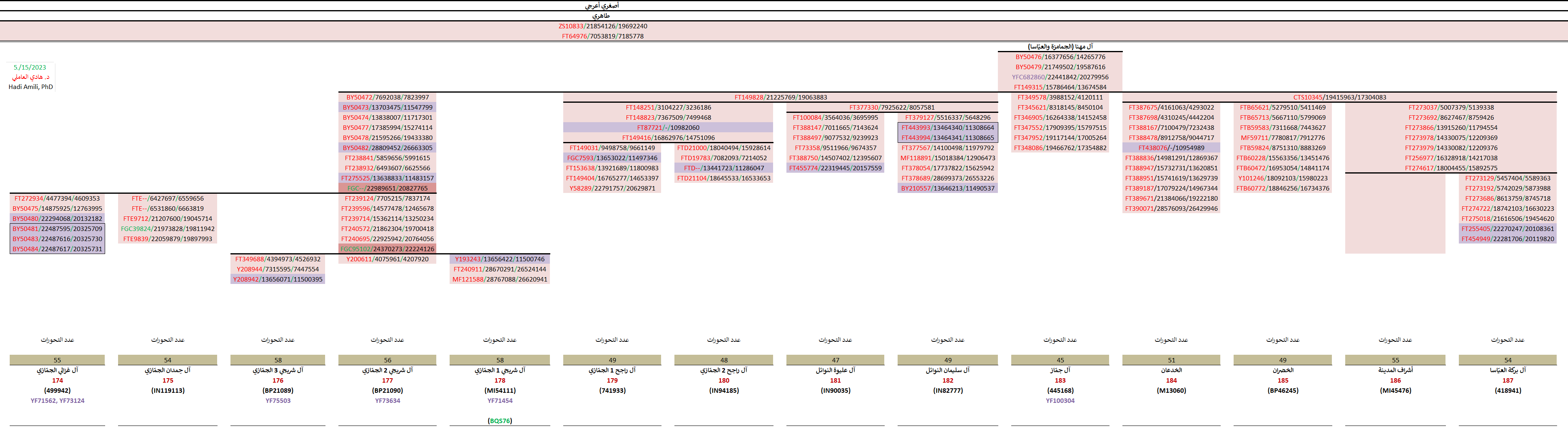 - سالبة للتحوّر FT377330 الخاصّ بالأشراف النوائل (السادة آل سليمان وآل عليوة وغيرهم).