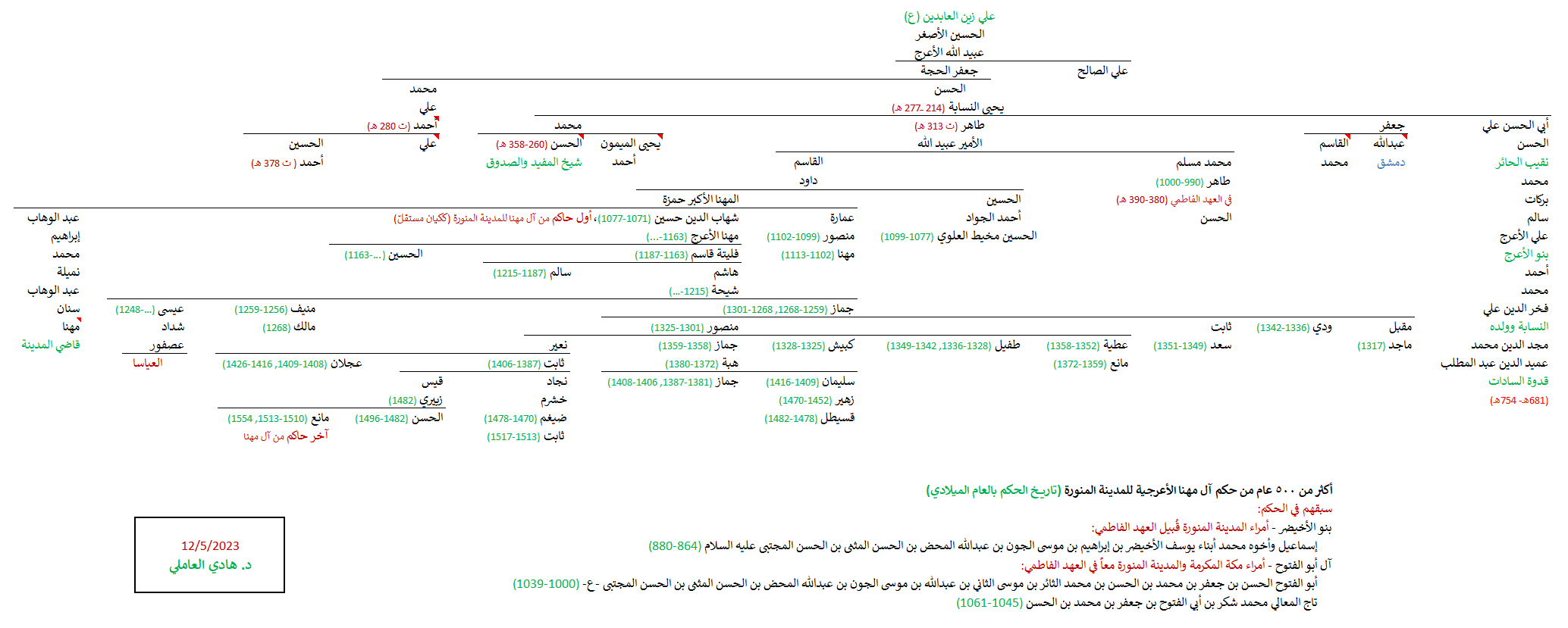- تذكير بمشجر آل مهنا الأعرجيّة – أمراء المدينة المنورة – أكثر من 500 عام لحُكْم المدينة المنورة.