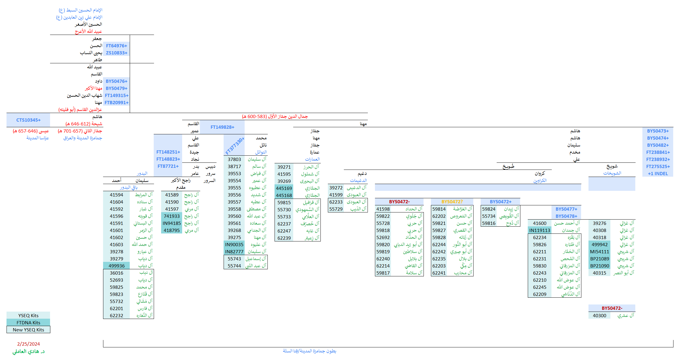 وهكذا بدا التحديث الجديد لمُشجّر الأشراف البدور الجيني بتحوّراته الخاصّة والمُشتركة الجديدة (مضموماً له باقي خطوط آل مهنا الجينيّة، من البدور والشويخات والكراوين والعياسا وباقي أولاد شيحة وآل جماز الثاني):