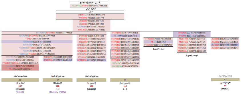 - تحتاج عيّنات البدور الستّة العُليا فحص تحوّر السيّد عمير بن القاسم (FT149828) حتى نتيقّن من انتمائها الجيني الصحيح.