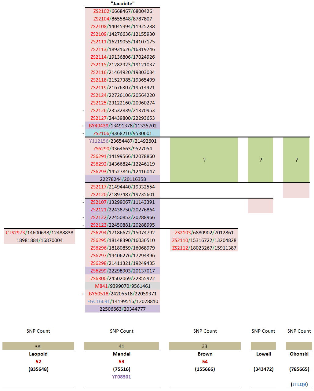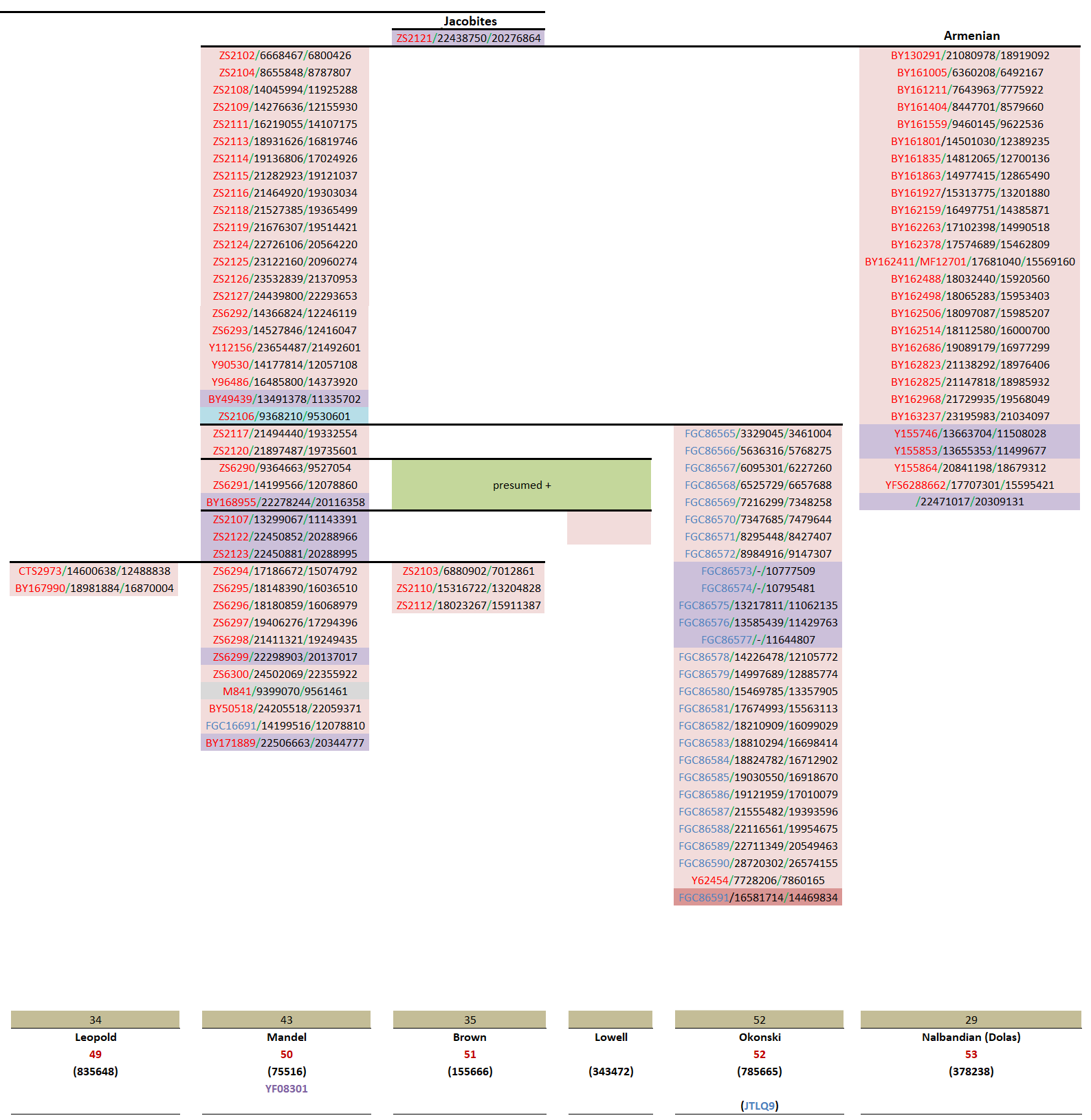 إلى اليوم، هناك حوالي أربعين عيّنة موجبة للتحور FGC8712 وتنتمي الى الخط الجيني الأوروبي-الشرقي ZS2102 (تحليليّاً وإفتراضيّاً، عبر تطابق STRs).