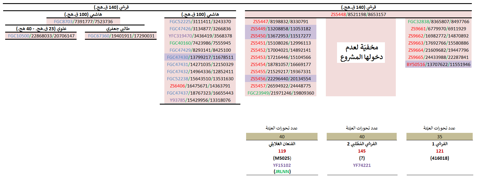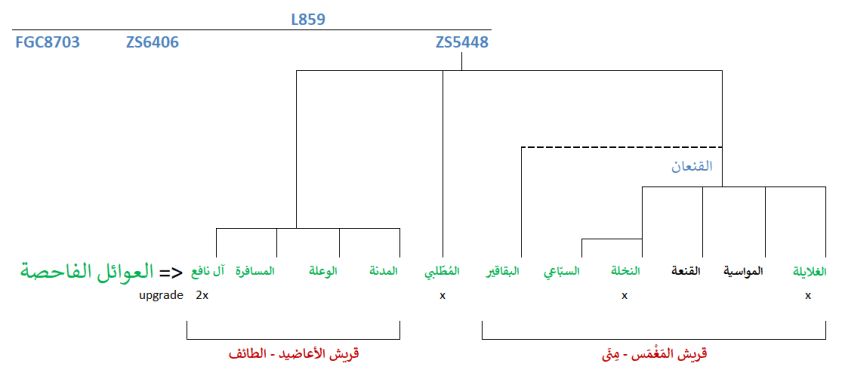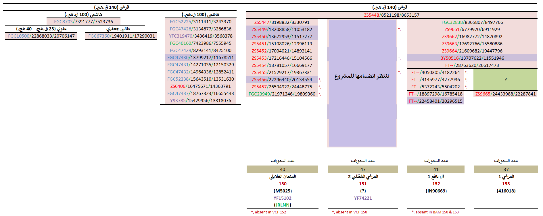 - عيّنات الأعاضيد الثلاث (الوعلة والمسافرة والمَدَنة) تحتاج للتّرقية (Y700) كي نتعرّف على مسافة جدّهم المُشترك مع هذا الفرع الجديد.