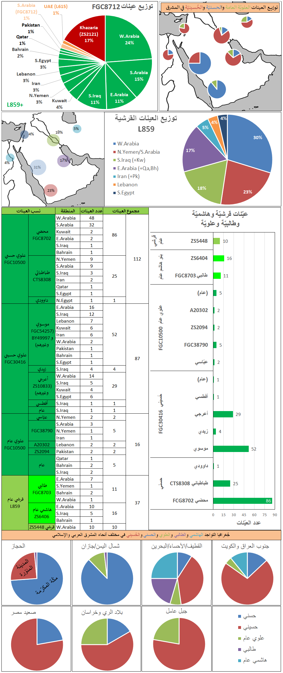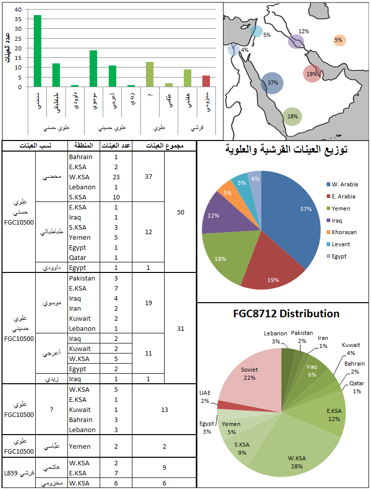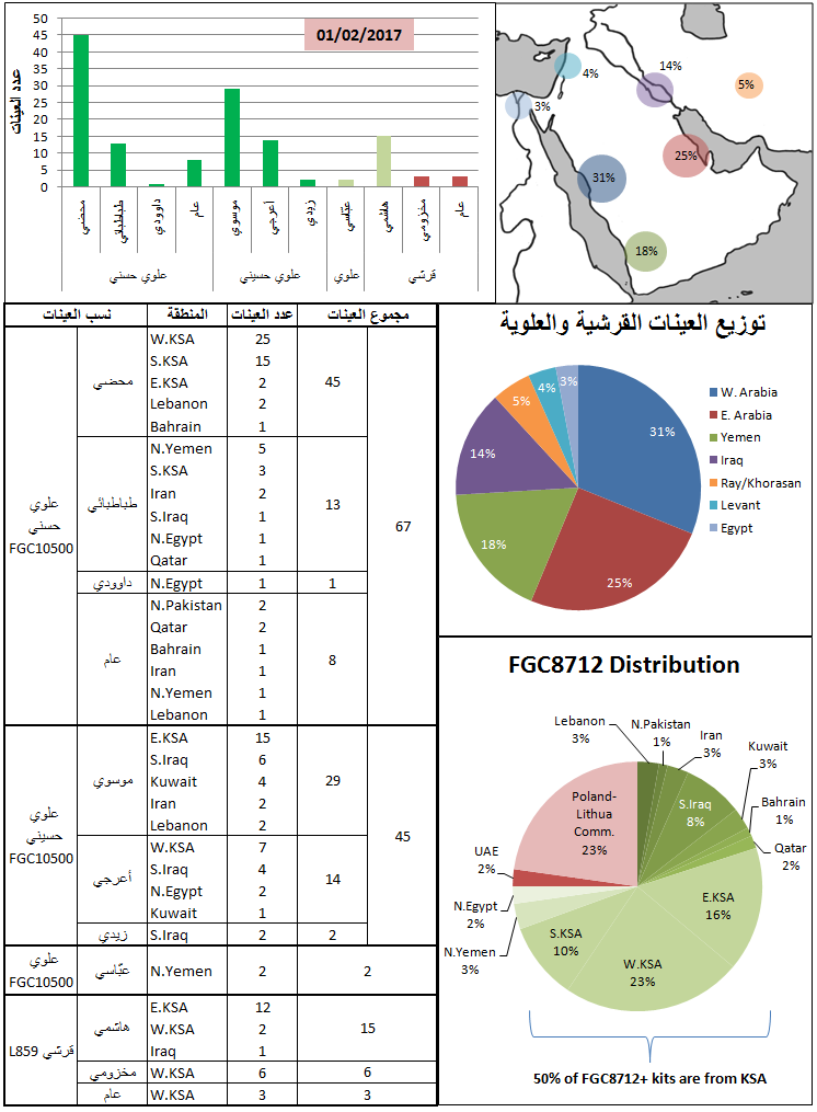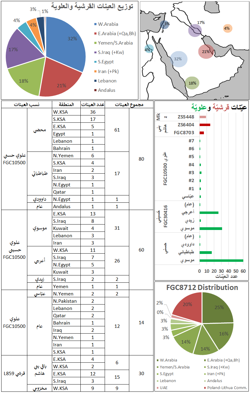 آخر إحصائيات العينات العلوية والقرشية وما جاورهما جينيّاً من أبناء التحور FGC8712:
