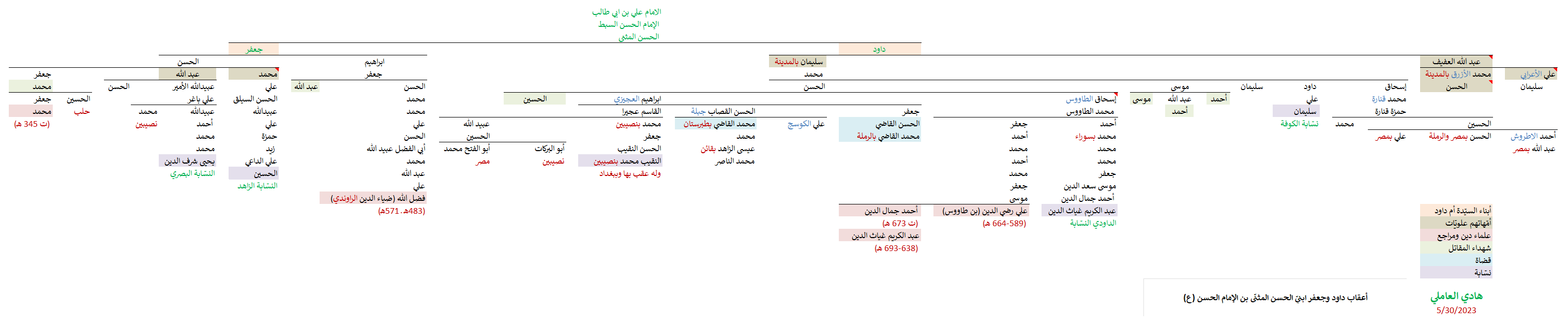 مواضيع مُتعلّقة: A31773 ، FGC8702 ، منتقلة السادة المحضيّين الحسنيّين ، ساحل اللآلئ الحسنيّة الموسوية ، مشاهد ومزارات الكوفة والنجف الأشرف ، مشاهد ومشاعر مكّة المُكرّمة ، مشاهد ومزارات المدينة المُنوّرة ، شواهد بني محمد الثائر في مكة ، المزيد من شواهد الطباطبائيّين التاريخية في مصر ، آل طباطبا في مصر ، منازل الطباطبائيّين في فَرع المدينة ، أنا جعفر بن محمد ، الطالبيّات والهاشميّات من أمّهات الطالبيّين ، منتقلة ذريّة إبراهيم الغَمْر (الطباطبائيّة والرسيّة وغيرهم) ، منتقلة الحسنيّين (الحسن وجعفر وداوُد وزيد) ، حَزْرة ونقوشها الكوفيّة ، منتقلة العقيليّين والحنفيّين – خرائط ومشجرات وآثار ، منتقلة الجعافرة – خرائط ومشجرات وآثار ، منتقلة الجعفريّين الحُسينيّين – خرائط ومشجرات وآثار ، منتقلة السادة الموسويّة – خرائط ومشجرات وآثار ، منتقلة الزيديّة وهيكليّتهم الجينيّة – خرائط ومشجرات