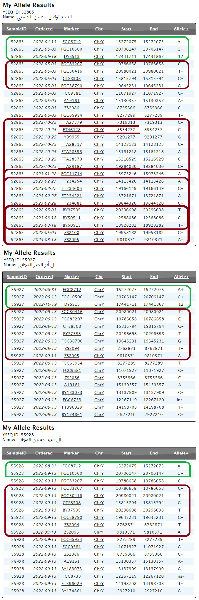 - الهواشم الأمراء –لم يظهر لهم تكتّل جيني واضح إلى الآن تحت FGC8702 وهم قيد البحث حاليّاً-.