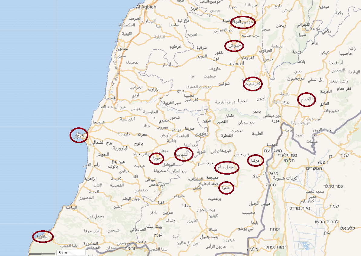 وتنتشر الهاشميّة العامليّة في جنوب لبنان بين القرى والبلدات المُتعدّدة، حيث تكاد لا تخلو بلدة عامليّة من وجود 4 إلى 8 عوائل من السادة العلويّين والهواشم هناك. وتتوزّع عوائل العيّنات العامليّة في المشروع على النحو التالي: